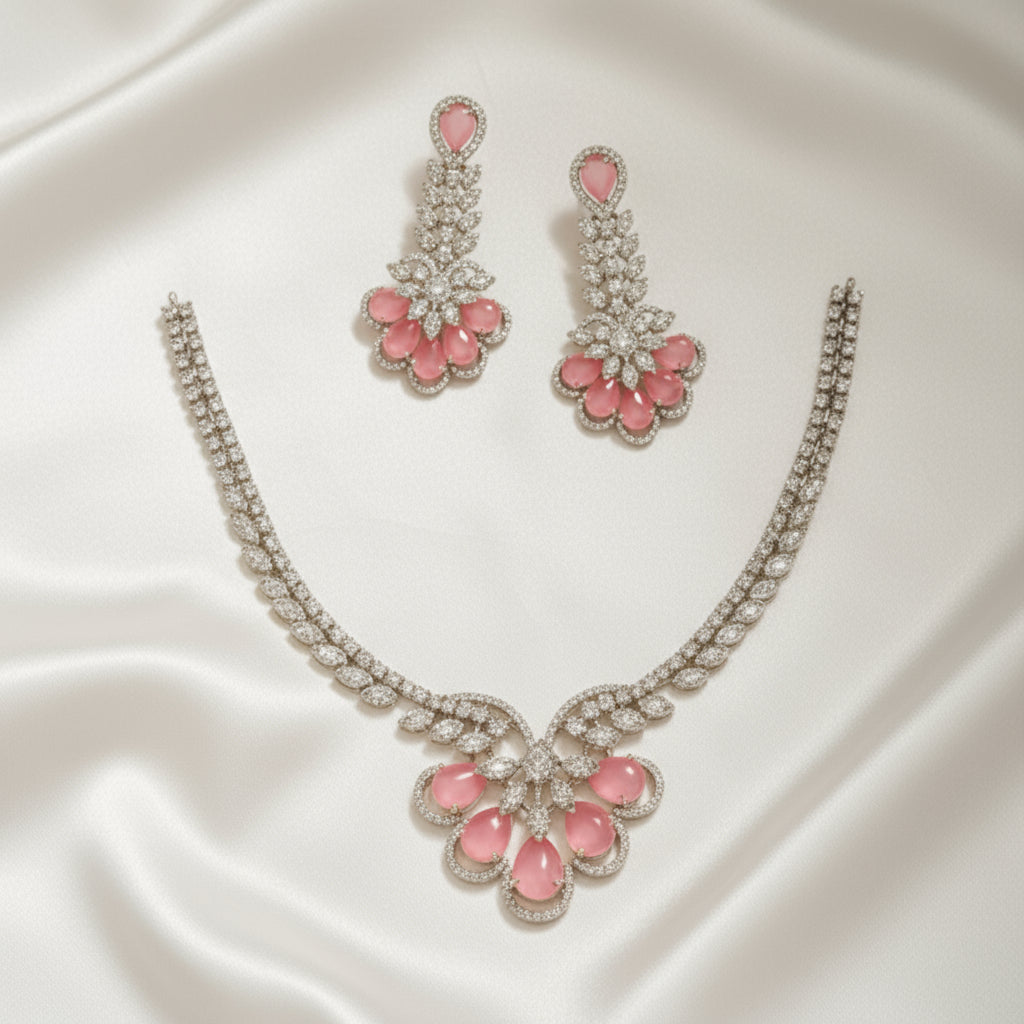 Regular price Rs. 3,599.00Sale price Rs. 3,599.00 Regular price Rs. 5,537.00Unit price / perDescription: This exquisite white stone necklace features intricate patterns throughout, highlighted by a graceful baby pink stone at the top that adds a soft, elegant touch....