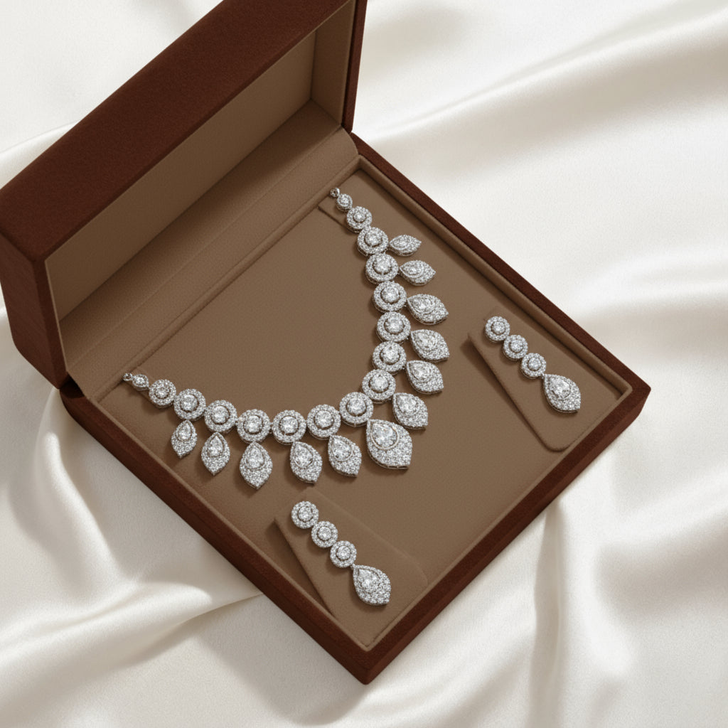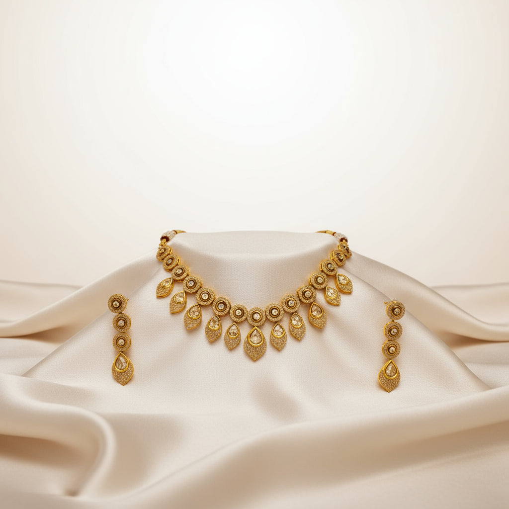 Regular price Rs. 7,799.00Sale price Rs. 7,799.00 Regular price Rs. 11,998.00Unit price / perDescription: 💎 This necklace stands out with its unique pear-shaped design that blends traditional charm with a refreshing twist. Its intricate detailing adds a graceful touch,...