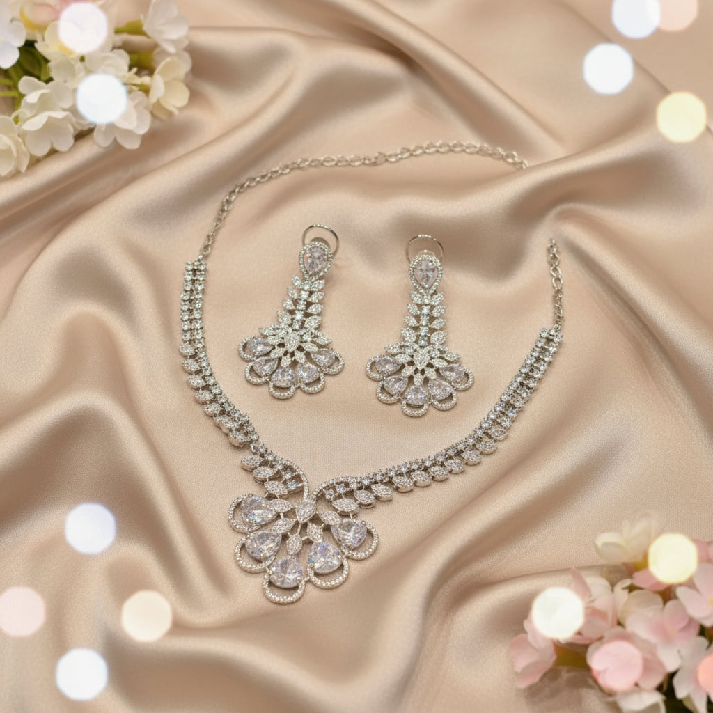 Regular price Rs. 3,999.00Sale price Rs. 3,999.00 Regular price Rs. 6,152.00Unit price / perDescription: This stunning white stone necklace features a graceful leaf-like pattern flowing seamlessly throughout its design, symbolizing elegance and harmony. At the center rests a striking...