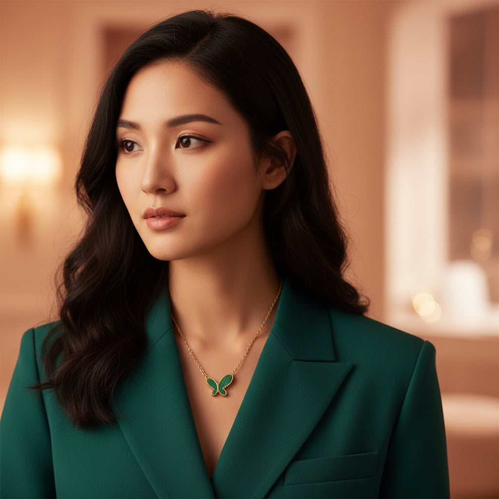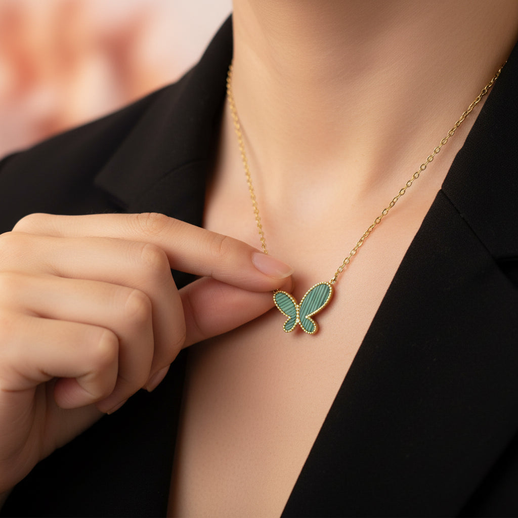 Description: A charming green butterfly pendant that adds a fresh, lively pop of colour to any outfit. Light, elegant, and perfect for everyday styling.