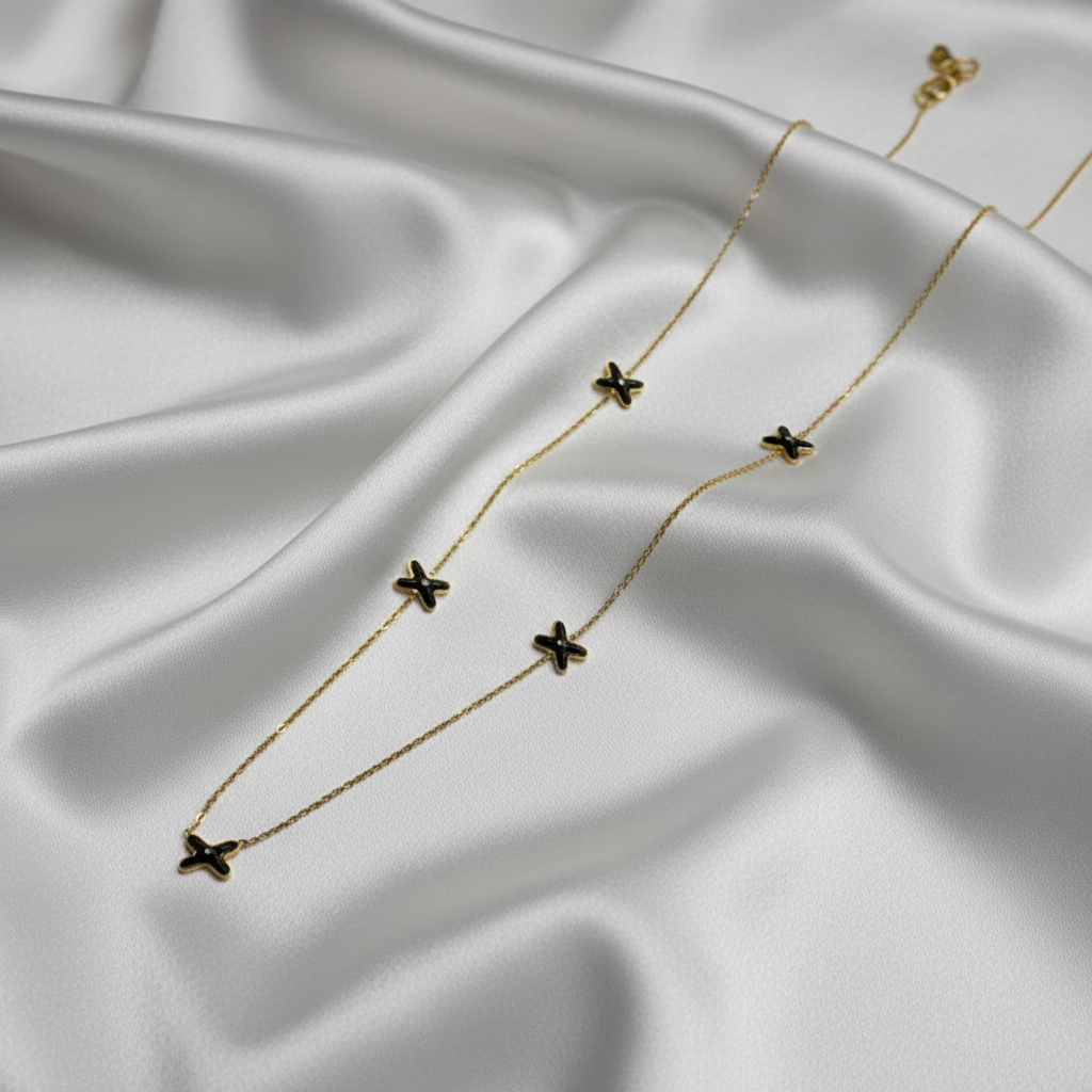 Description: A sleek chain adorned with multiple cross-shaped symbols, giving your look a bold yet minimal aesthetic. Perfect for casual, chic, and street-style outfits.
