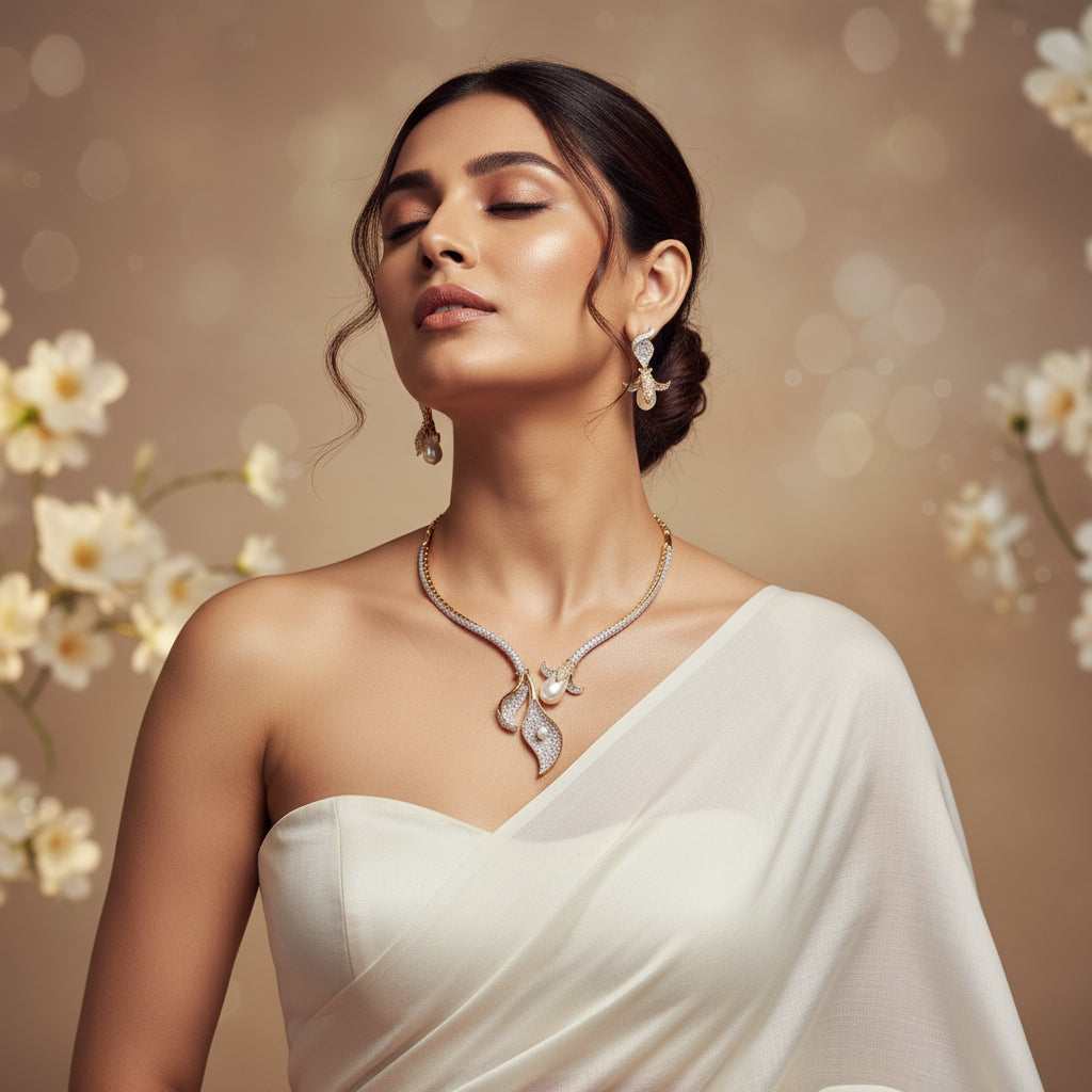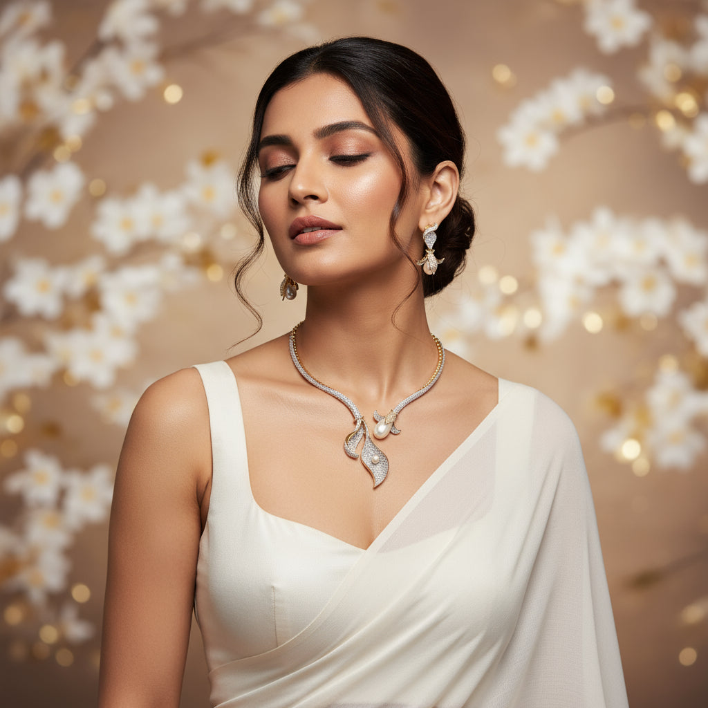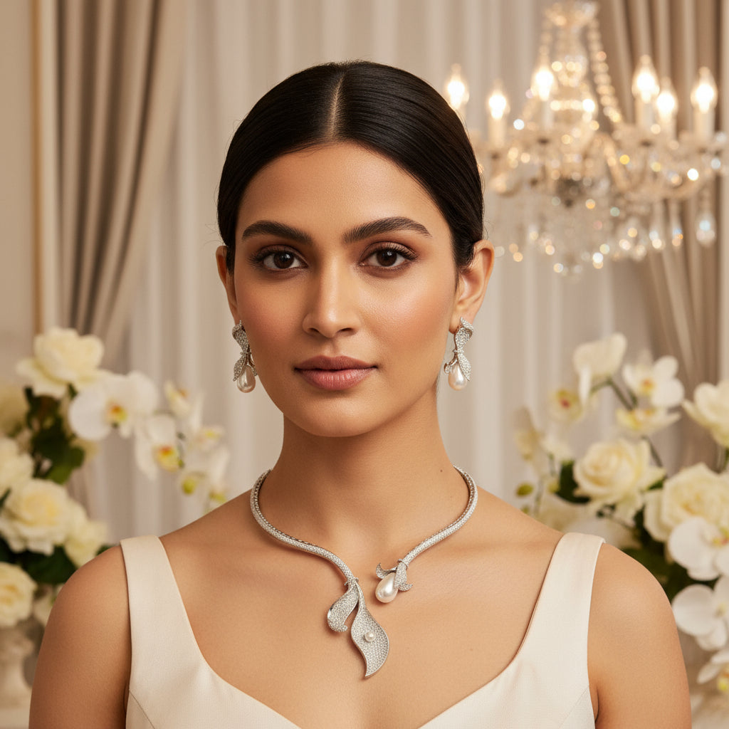 Styling Tip: Pair it with a solid-colored off-shoulder or V-neck slim fit dress to highlight the necklaceβs shape, and keep your hairstyle sleek or pulled back to let the pearls and design shine. π