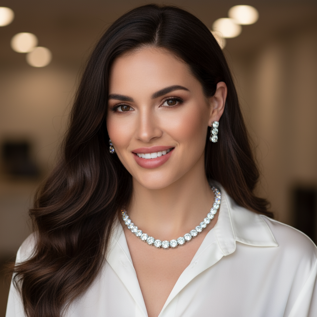 Style Tip: Ideal for both formal and festive occasions, this timeless piece pairs beautifully with pastel or deep-colored outfits. Wear it with a classic saree, gown, or cocktail dress, and pull your hair back to let the sparkling stones accentuate your neckline and face.
