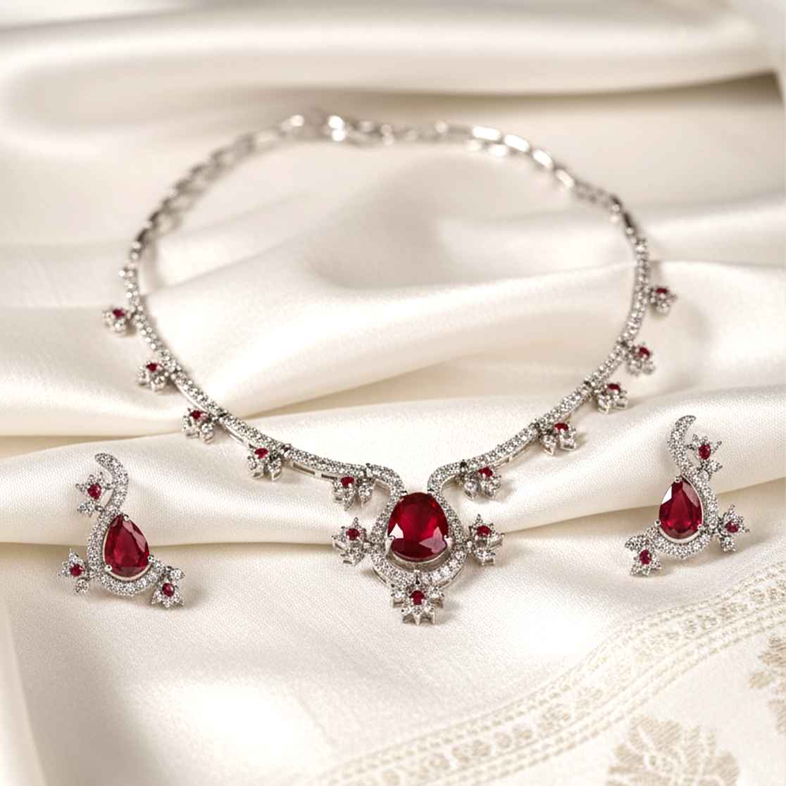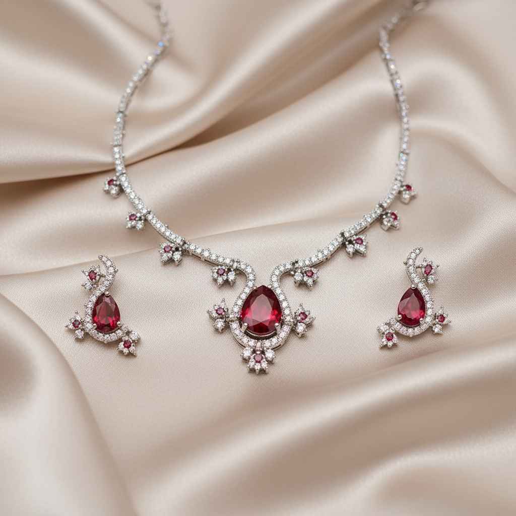 Description: ✨ Unique and elegant — this necklace features intricate silver work with sparkling stones embedded, creating a refined yet standout look. Its artistic design adds sophistication, perfect for festive occasions or special evenings. 💎